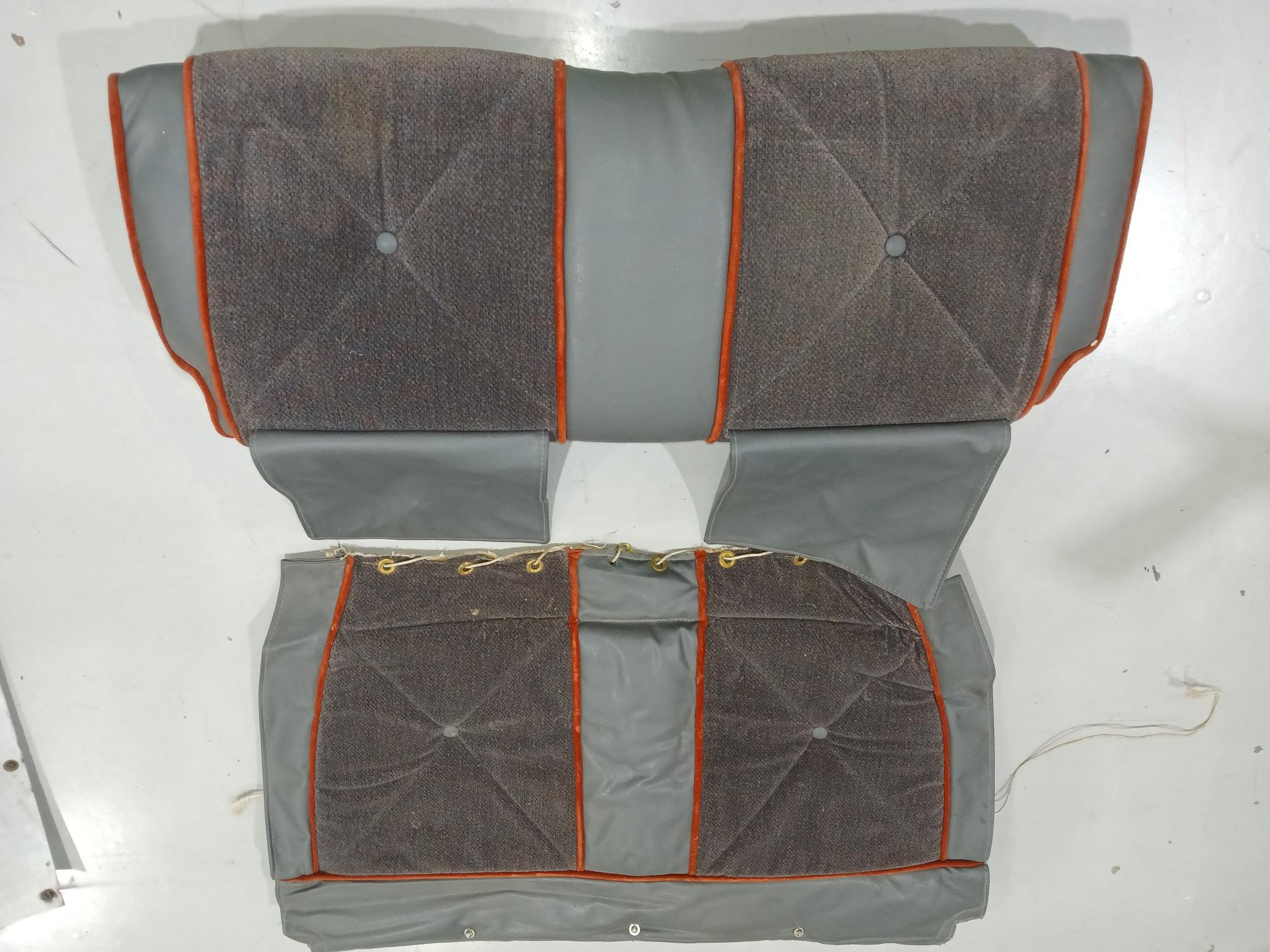 | New Dark Gray Fabric and Vinyl Upholstery, New Gray Carpeting and extra fabric and Vinyl cloth | |||||||