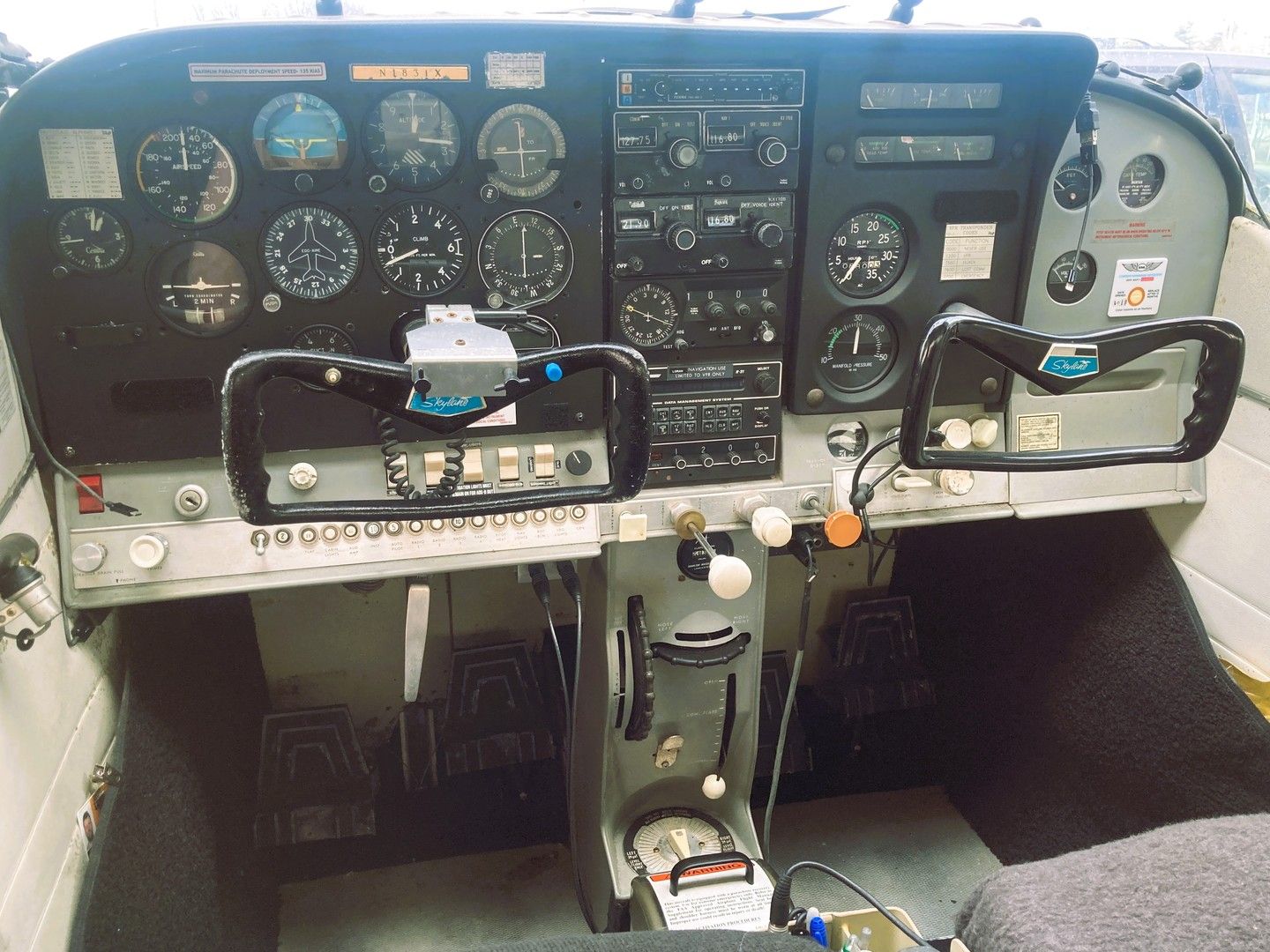 There is a BRS-182 ballistic parachute installed, so, you get Cirrus like backup at 1960s Cessna price. https://brsaerospace.com/cessna/