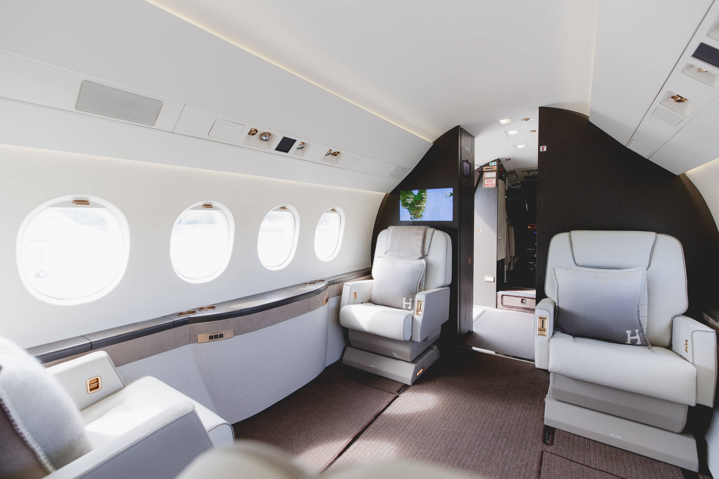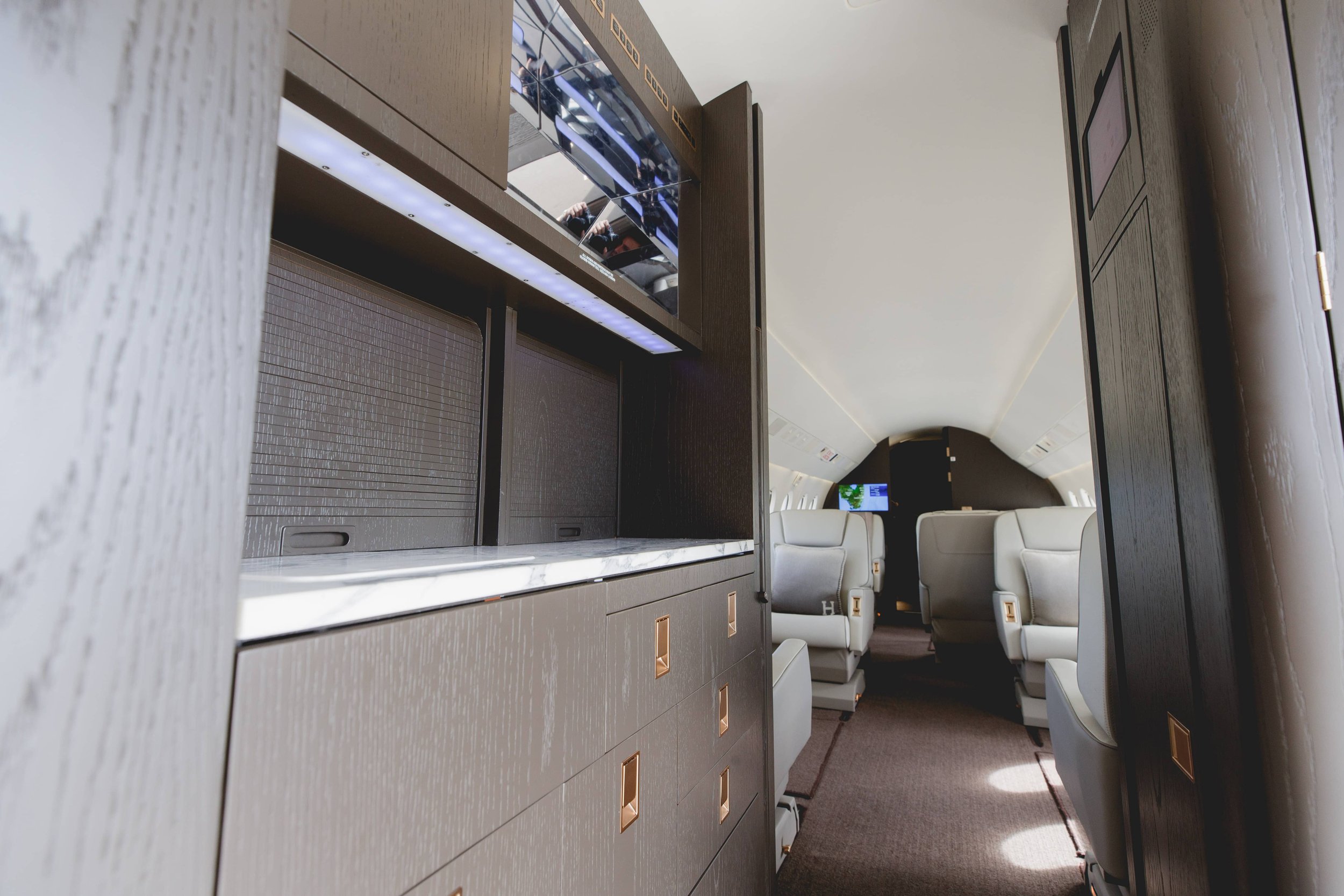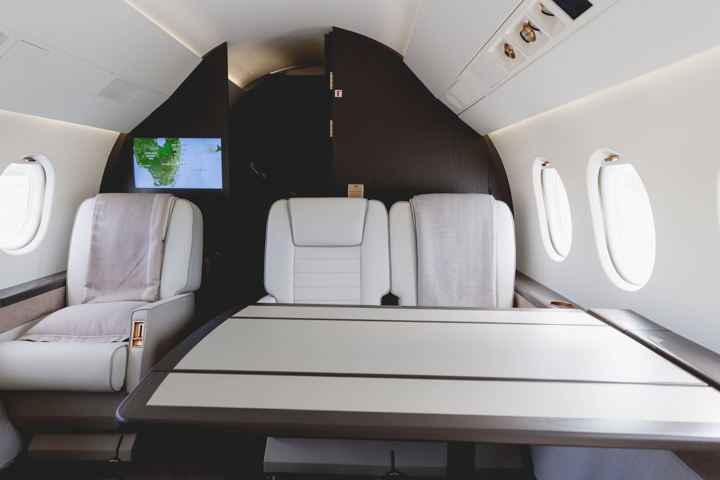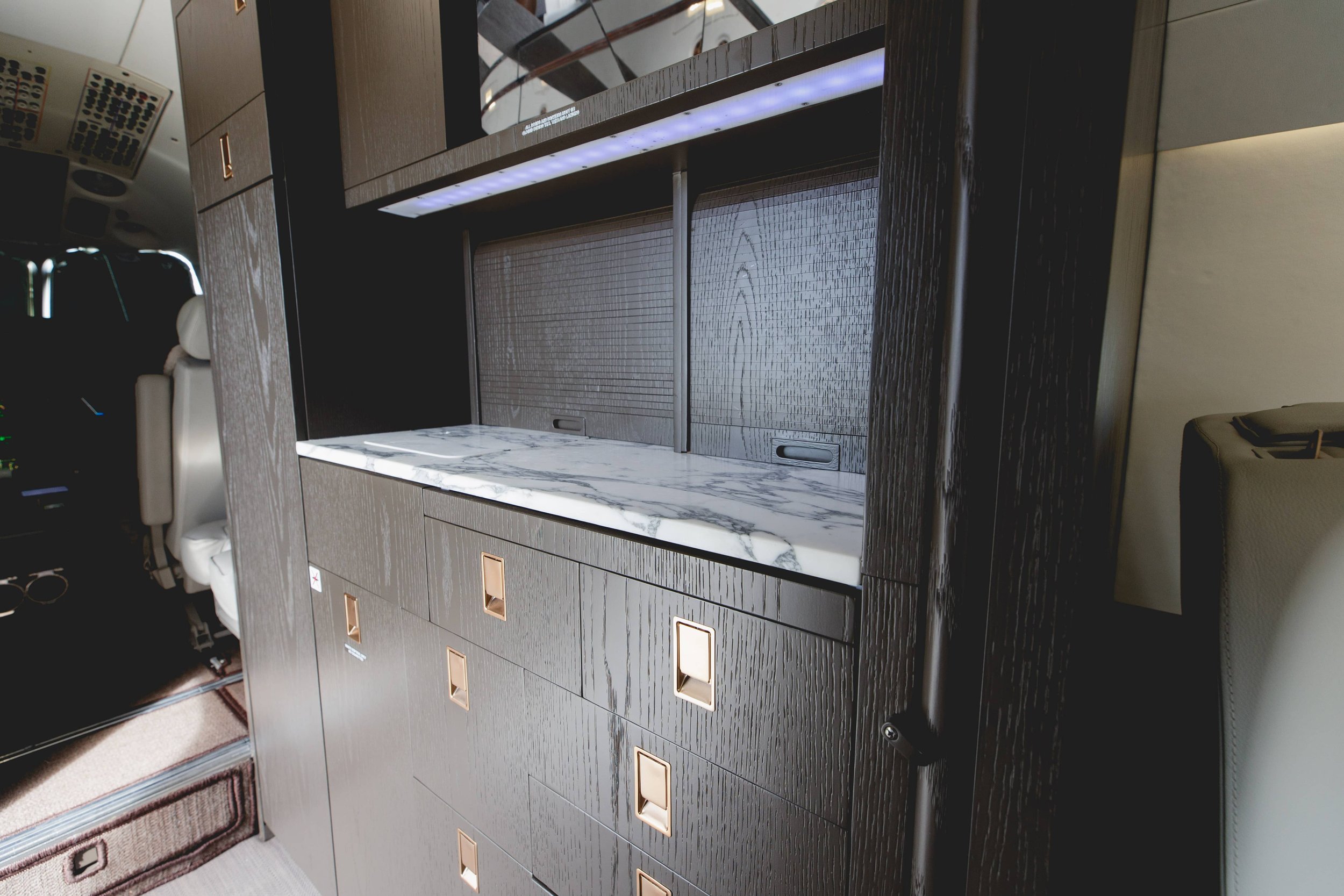 10 Seat Configuration Forward Refreshment Center Aft Lav NEW DESIGNER INTERIOR BY VIP COMPLETIONS c/w 2022 Seats upholstered in premium Garrett leathers Wood in a richly grained oak in warm matte brown finish Carpeting and cabin details in luxurious Loro Piana Custom-designed countertops with single slab stone Custom Crestron CMS with touch panels embedded at each seat location and galley Custom ALTO audio system calibrated for using ALTO’s MySound optimization tool GoGo L5 AVANCE WiFi Upgraded high-definition monitors Dynamic full-spectrum RGB LED lighting PLEX media server |