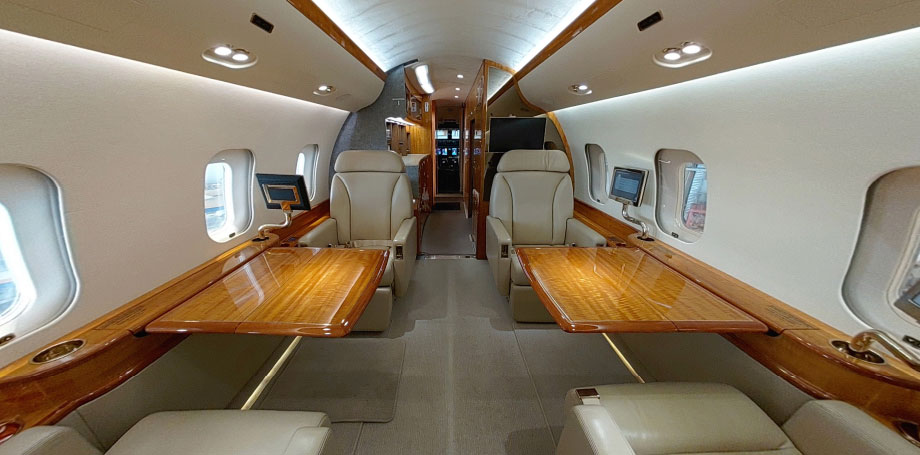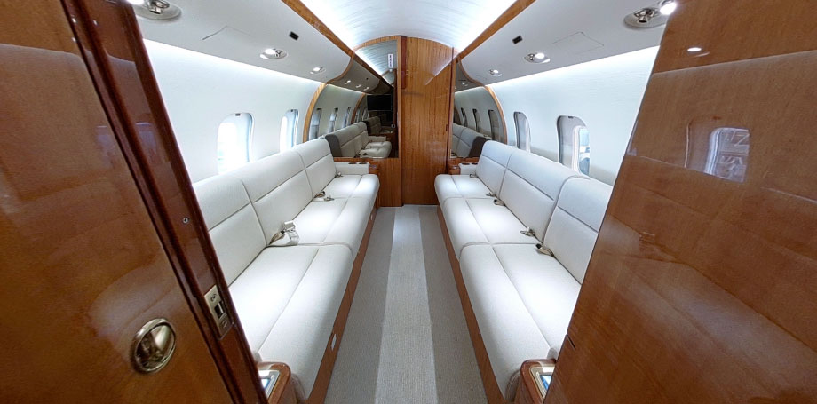 Passengers: 14/15 Seats Certified for Taxi, Take-Off & Landing (TTOL) Forward Cabin: Four (4) Place Double-Club Seating Mid Cabin: Four (4) Place Conference Grouping Opposite Three (3) Place Divan (2 Seats Certified for TTOL) Aft Cabin: Dual Three (3) Place Divans (2 Seats each Certified for TTOL / 3 Seats on RH Divan if removable bulkhead not installed) Crew Rest Location: Forward Lavatory Location: Forward & Aft |