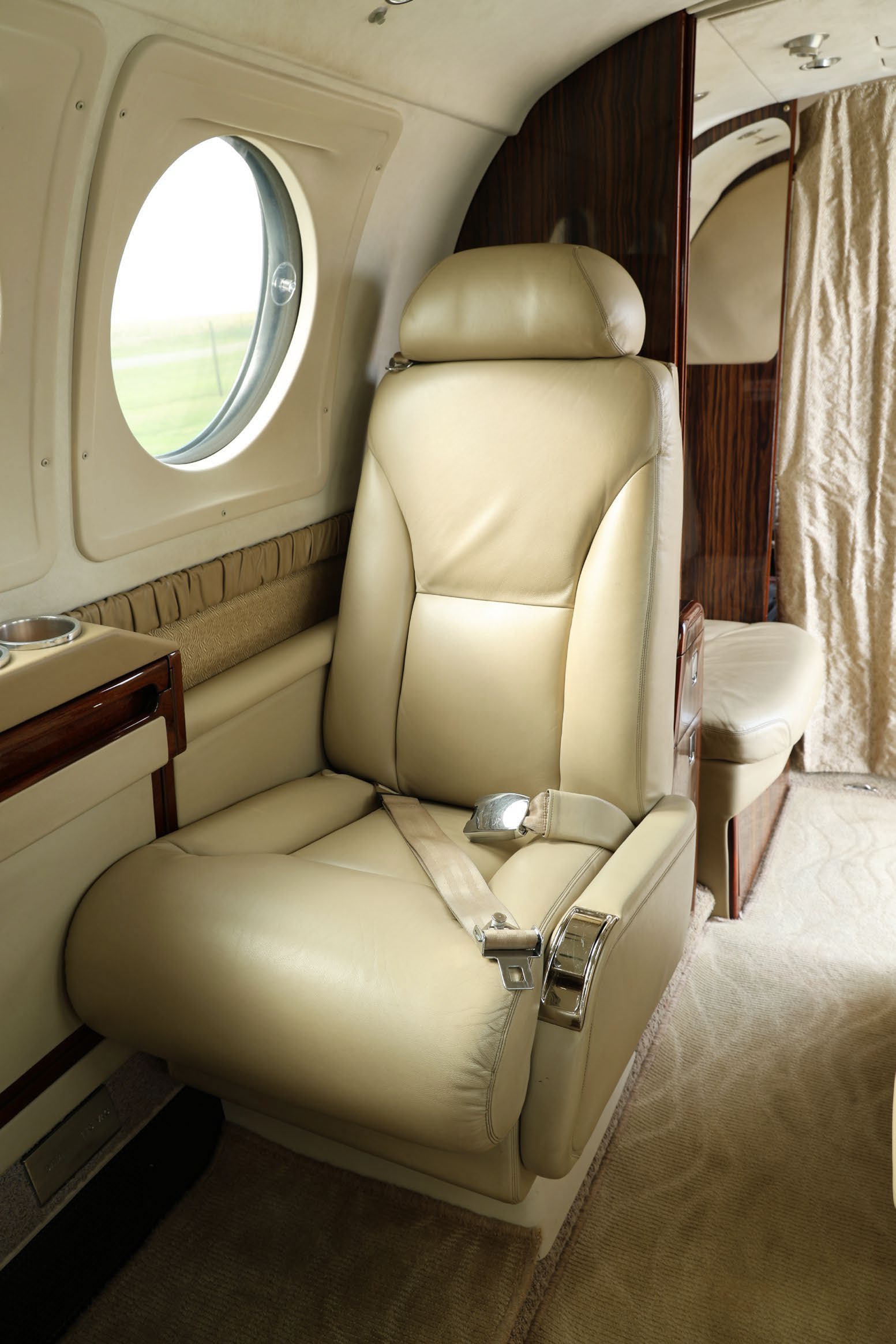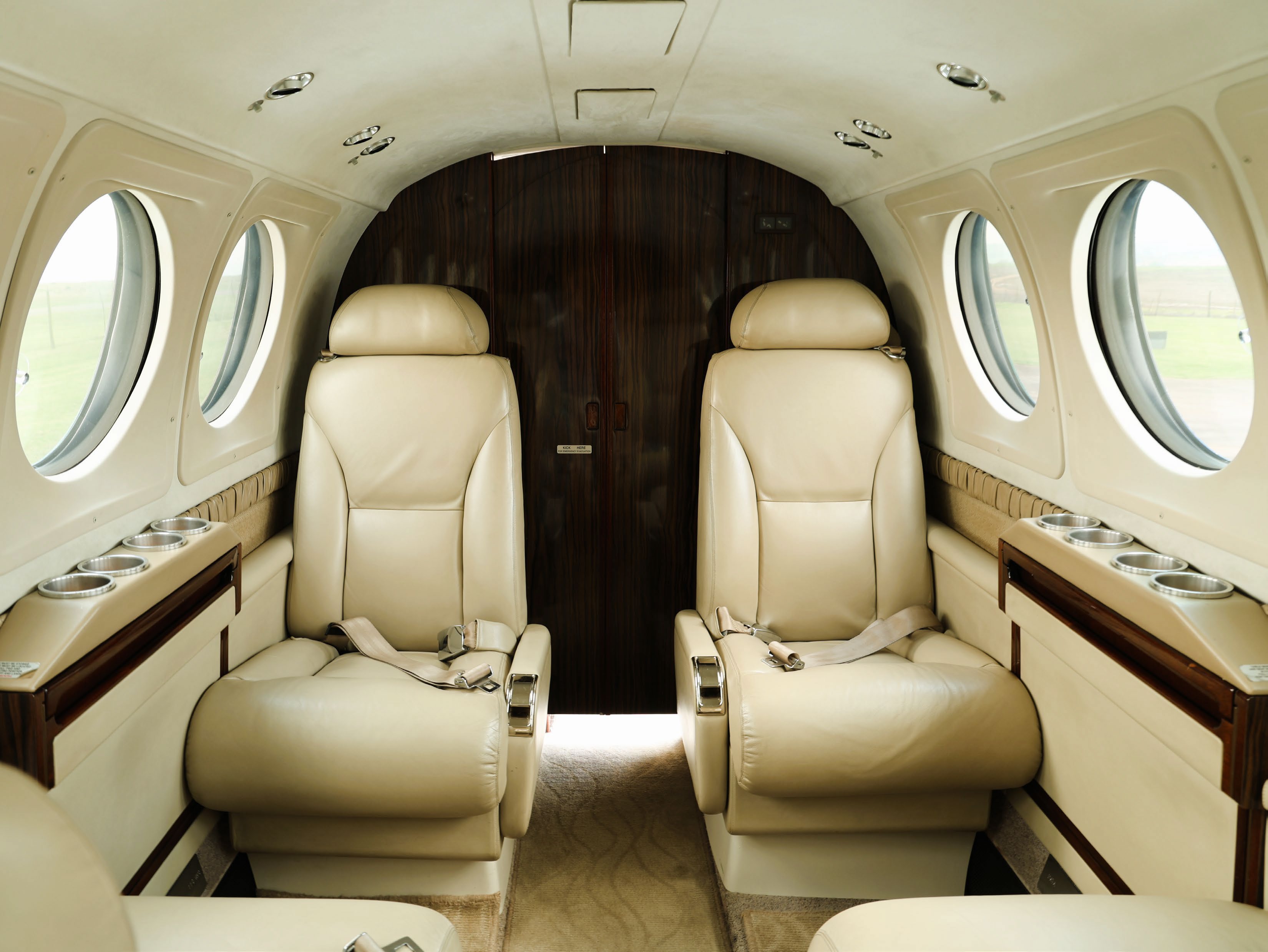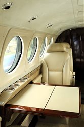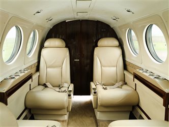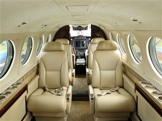 (Original) The King Air 250 offers a spacious cabin configured for nine (9) passenger. The interior features a 2 aft facing seat, a four-place club arrangement, followed by a belted, side-facing lavatory and finally, removable dual aft folding seats in the baggage area. |