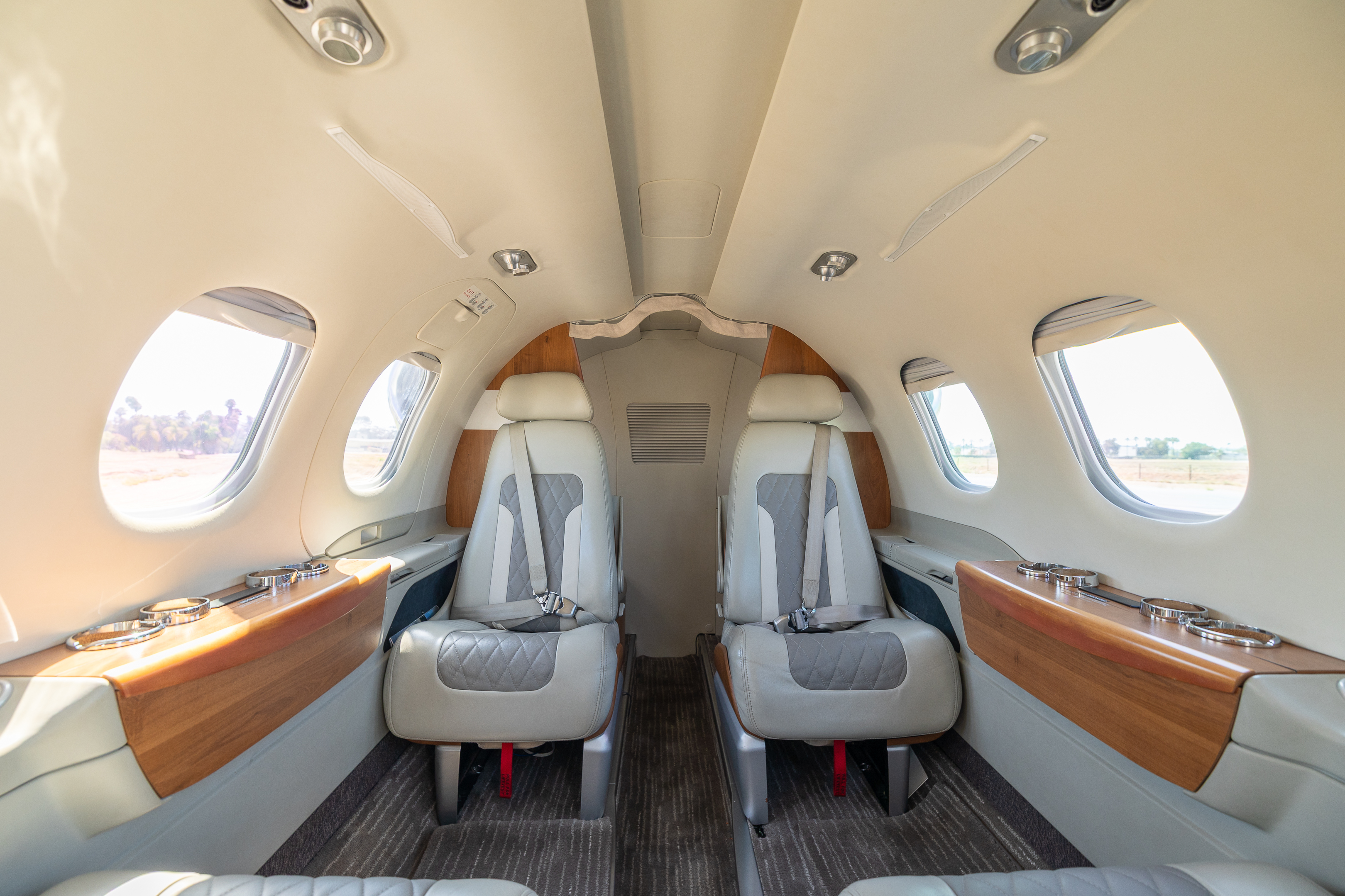 - Aft Non Belted Lav, Fwd Refreshment Center, Air Conditioning - Grey Leather, Grey Patterned Carpet - Interior Redone 2020 by Hillaero Modification Center |