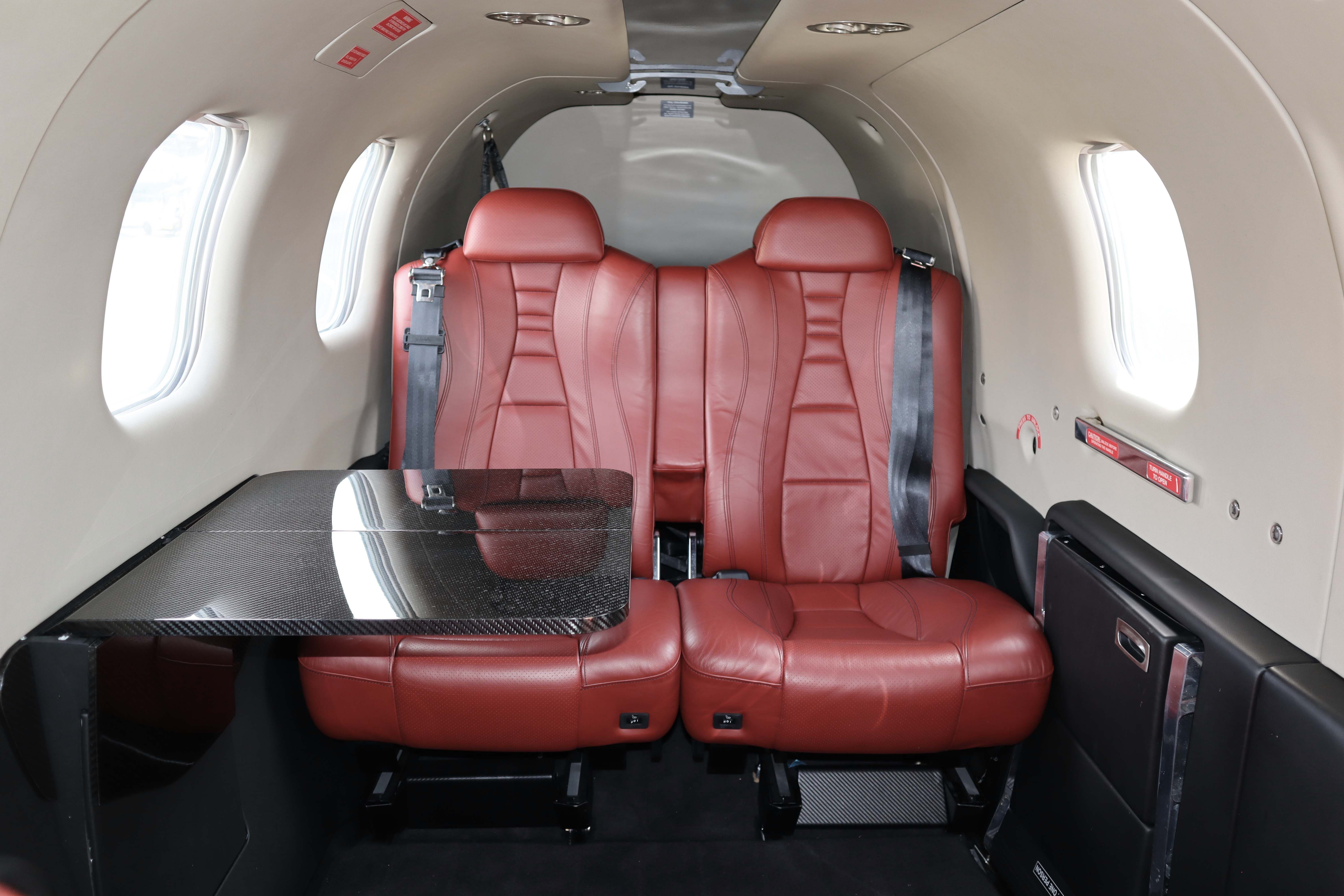 CABIN: Cabin Seating For 4 in a Center-Club Configuration Pilot Door HI-Power USB Ports Four-point seat belts with integrated airbags for the pilot and copilot Right-hand forward Carbon Fiber storage drawer Executive table |